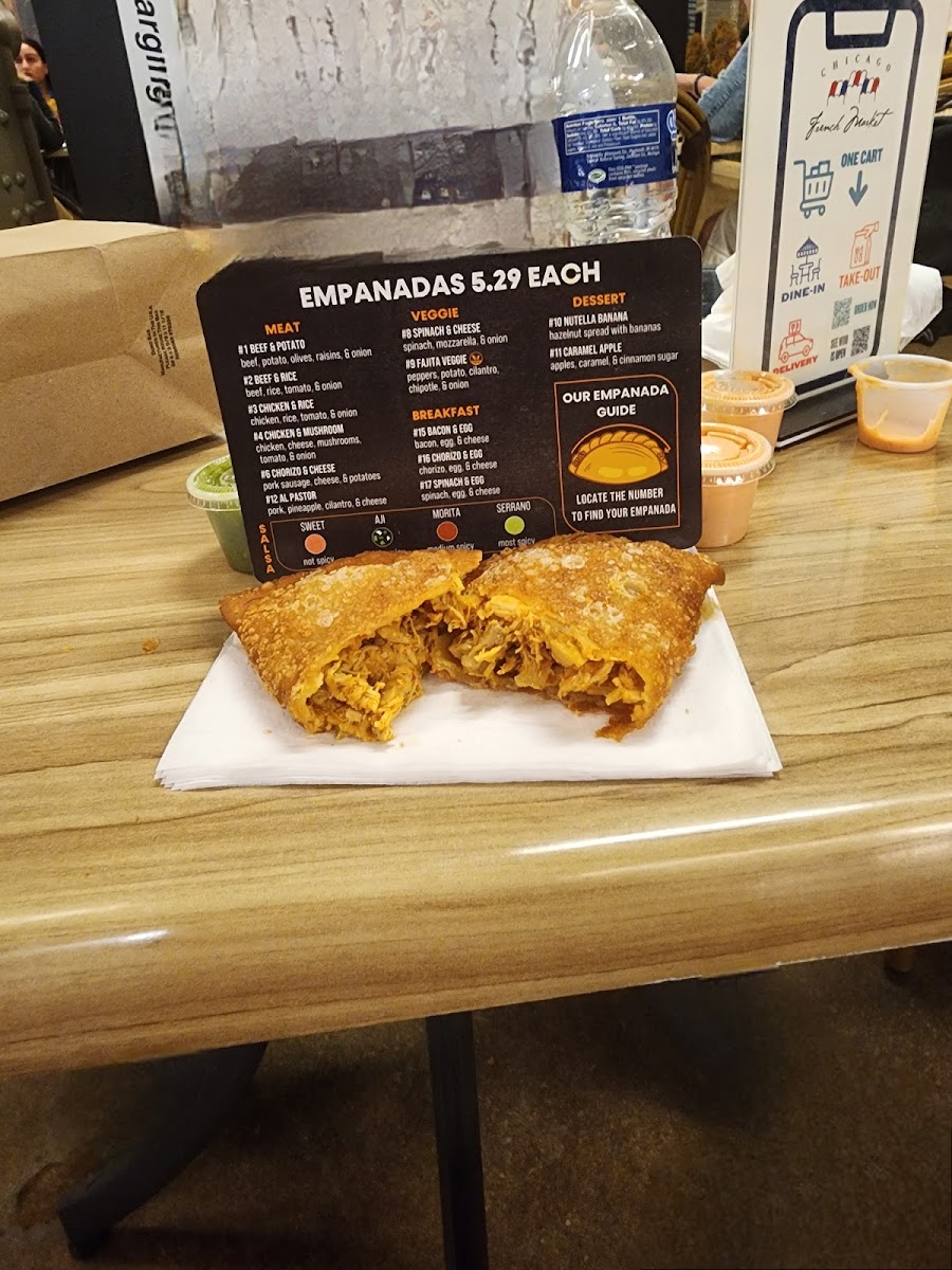 Located in the vibrant Chicago French Market, Lito's Empanadas offers a delightful selection of authentic empanadas bursting with flavor. Each empanada is crafted with care, featuring a variety of fillings that cater to all palates. The standout options include the classic Beef Empanada, filled with ground beef, olives, raisins, and a medley of finely diced vegetables, priced at just $3.85. For those seeking an adventurous bite, the Chicken & Mushroom and Al Pastor empanadas have received rave reviews for their bold flavors.